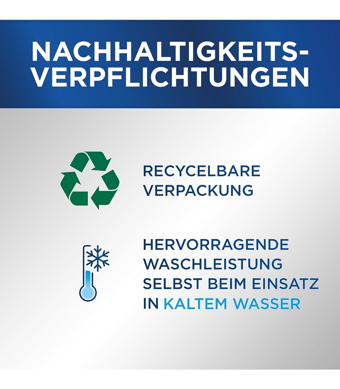 Eficient: Ingrediente de înaltă performanță și tehnologii brevetate P&G pentru rezultate excelente de curățare: îndepărtarea petelor dificile, alb radiant și prospețime de lungă durată. Eficient la temperaturi scăzute de la 30°C.