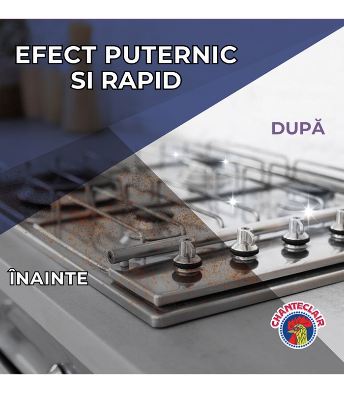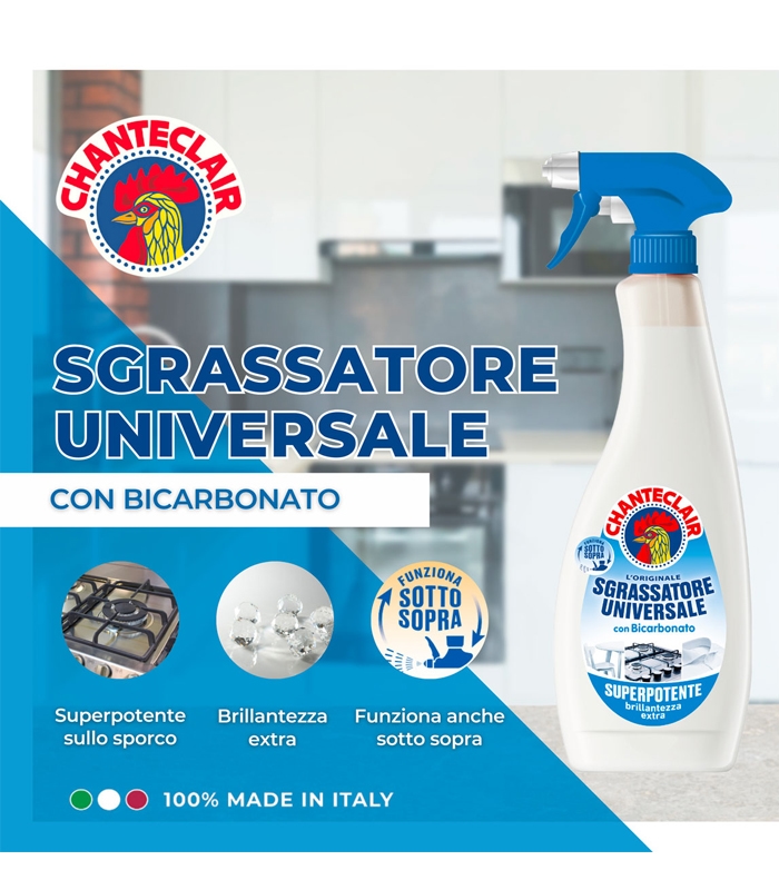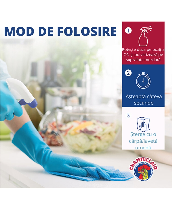 Degresantul Chanteclair este un produs special creat pentru curatenia bucatariei, cu rol de degresare. Indeparteaza rapid murdaria lasand un parfum placut. Ideal pentru indepartarea petelor dificile de grasime, mancarii arse, petelor de ulei si a murdariei intarite.