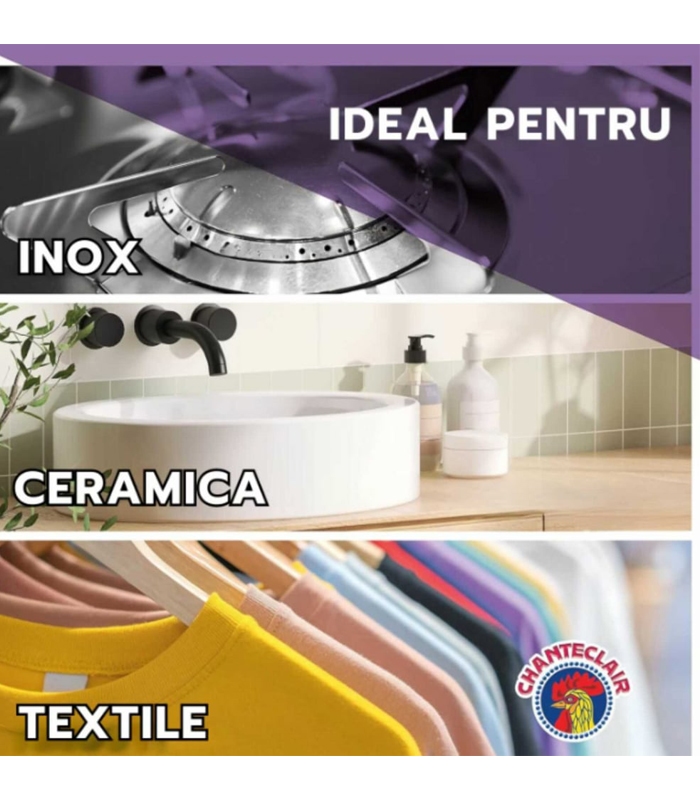Degresantul Chanteclair este un produs special creat pentru curatenia bucatariei, cu rol de degresare. Indeparteaza rapid murdaria lasand un parfum placut. Ideal pentru indepartarea petelor dificile de grasime, mancarii arse, petelor de ulei si a murdariei intarite. Chanteclair breveteaza doar formule bazate pe ingrediente naturale.