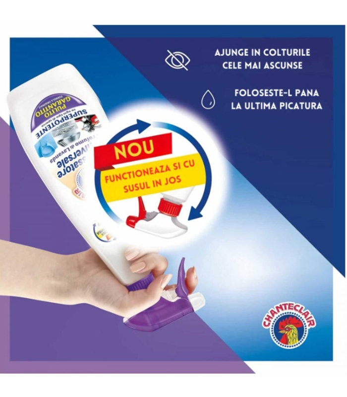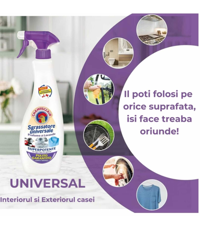 Solutie de curatare universala degresanta cu miros de lavanda, Chante Clair, eficienta impotriva tuturor tipurilor de murdarie persistenta si grasime de pe toate suprafetele din casa si pete de pe tesaturi!