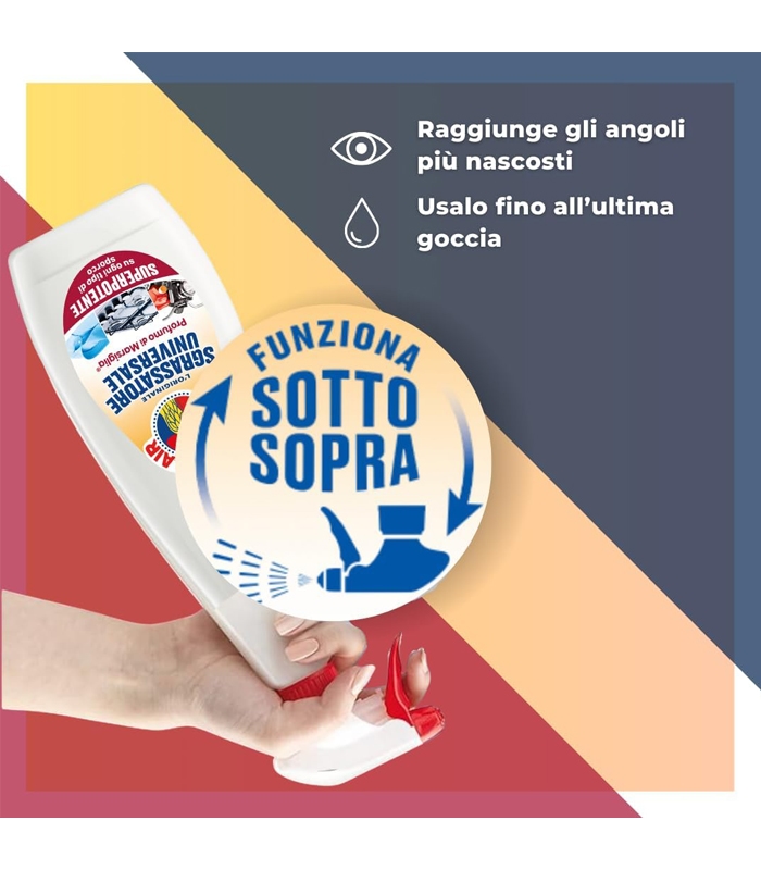 SUPER PUTERNIC ASUPRA TOATE TIPURILOR DE MURDĂRIE: degresează, îndepărtează petele și curăță temeinic toate tipurile de murdărie, chiar și cele mai încăpățânate, de pe toate suprafețele. Formula sa specială îmbogățită cu bicarbonat asigură o curățare strălucitoare, fără urme. Este ideal chiar și pentru țesături.