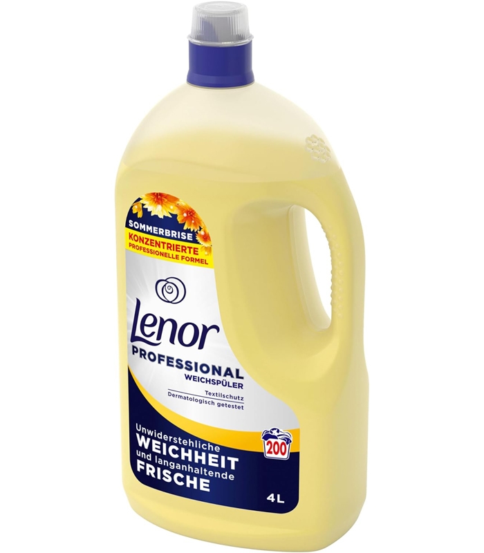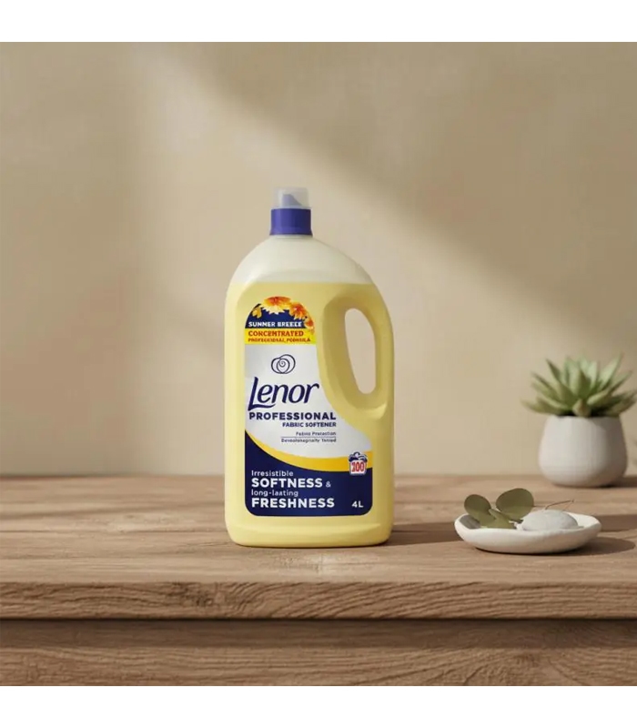 Experimentați o moliciune irezistibilă și o prospețime de lungă durată cu Lenor Professional Summer Breeze, balsamul de rufe pentru nevoile dumneavoastră profesionale. Summer Breeze oferă o protecție textilă excepțională pentru prosoape, articole de îmbrăcăminte și uniforme, protejează fibrele și prelungește durata de viață a rufelor. Răsfățați-vă oaspeții cu prospețimea unică a Lenor: Summer Breeze prezintă un parfum clasic, cu un miros floral ușor și delicat, împrospătat de note de vârf revigorante. Îmbunătățiți-vă rutina de îngrijire a textilelor cu Summer Breeze – alegerea dovedită pentru profesioniști. Pentru rezultate de curățare optime, utilizați Lenor Professional împreună cu Ariel Professional.